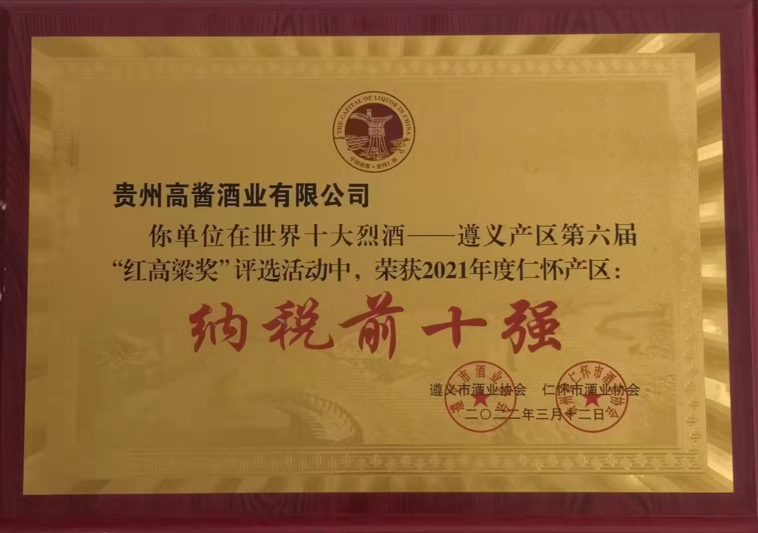开云体育-开云(中国)股份旗下高酱酒业坐落于贵州省仁怀市名酒工业园区。作为贵州省仁怀市酒业协会副会长单位、中国酒都仁怀白酒企业100强,高酱酒业目前已是贵州仁怀地区规模生产以上及主要纳税单位,2021年纳税额达到1.2亿元人民币。根据仁怀市酒业协会今年3月1日的公示,高酱酒业被评为世界十大烈酒——遵义产区第六届“红高粱奖”2021年度仁怀产区纳税前十强企业。